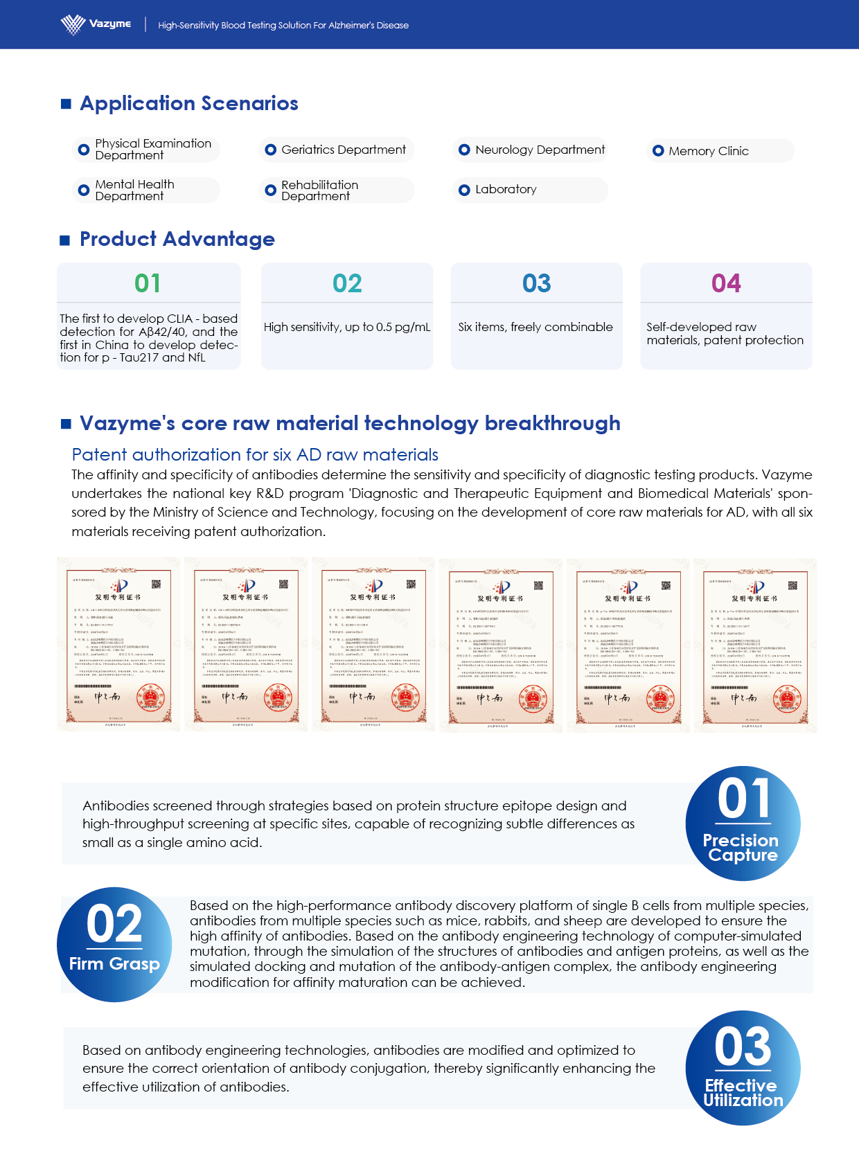 Building on this breakthrough, Vazyme leverages its innovation and technological strengths in AD detection to support early screening, diagnosis, and treatment. Our solution continues to turn these advances into practical impact, creating significant medical value in AD clinical research, large-scale community screening, and precision diagnostics.