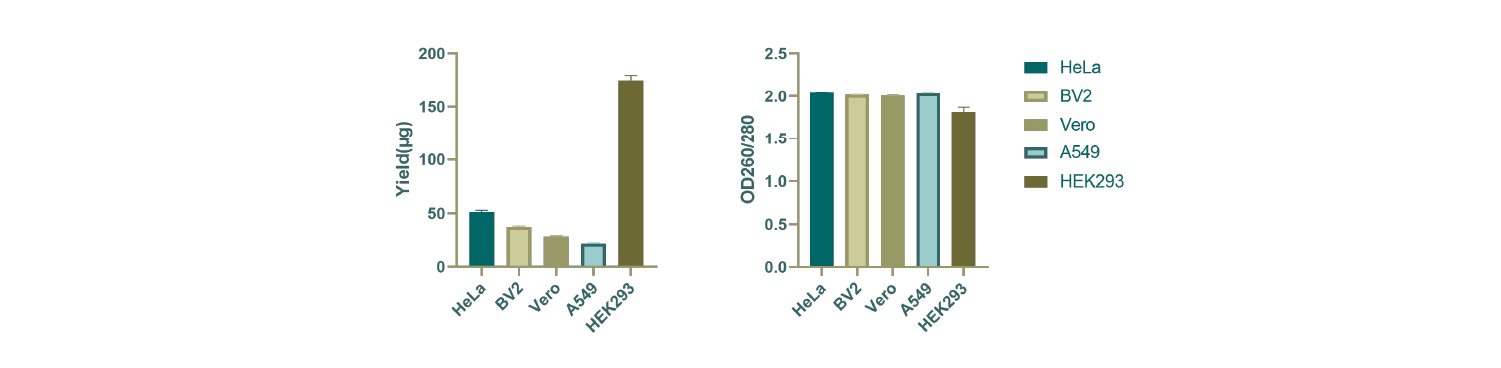 RMA101 delivers consistently high RNA yields across a variety of cell lines, including HeLa, BV2, Vero, A549, and HEK293T. Quantified by NanoDrop, the RNA shows excellent purity and reliability, ensuring optimal performance for all downstream applications.