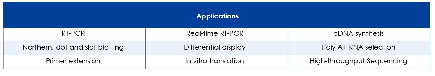 From RT-PCR and qRT-PCR to Northern/Dot Blot, in vitro translation, and next-generation sequencing, RMA101 provides the quality and consistency required to accelerate molecular biology research.